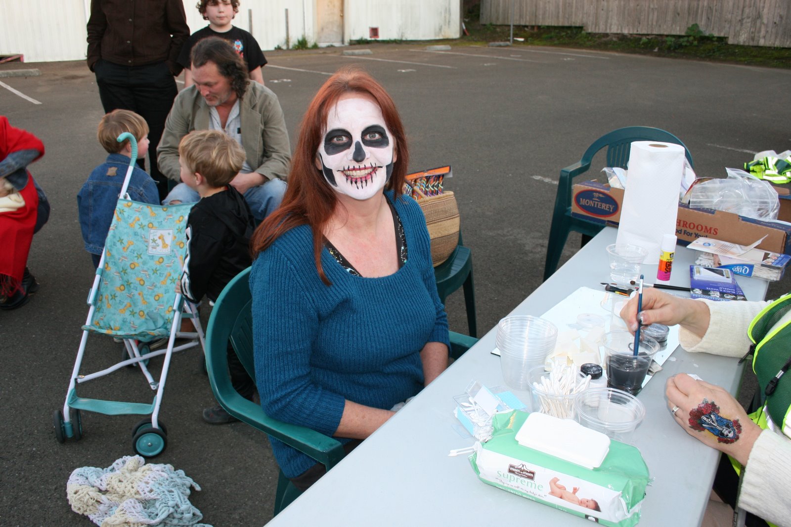 Following are some photos of the Day of the Dead 2010 First Annual Event in Fort Bragg, CA. We walked through town, some of us had our faces painted, and we had candles and glow sticks and flashlights. We carried photos of our loved ones who passed or just carried their memories with us in our hearts and minds on our walk. Everyone was loving and caring at the event. People were in good moods and it was a nice time spent remembering our loved ones and meeting new people, too.